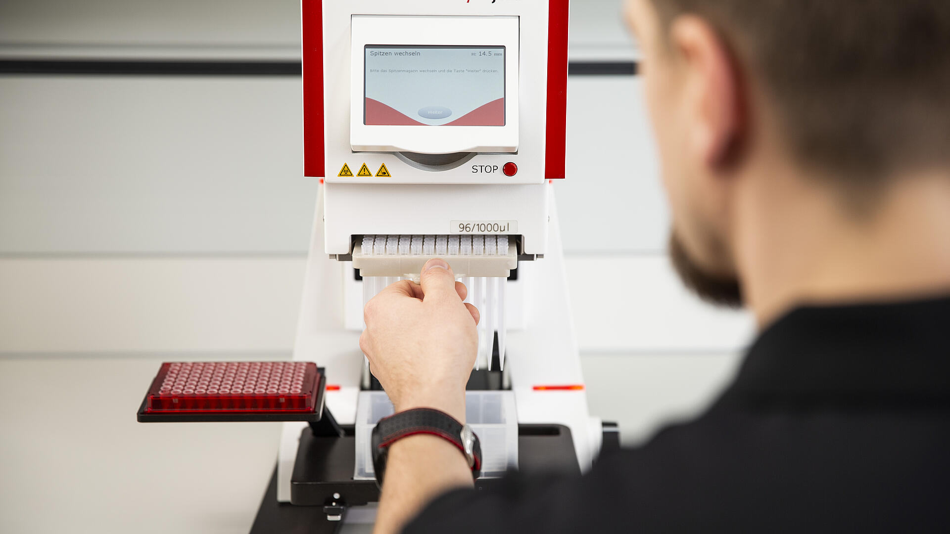 CyBio SELMA配備了預分裝的移液吸頭,可快速更換槍頭,節約時間。
